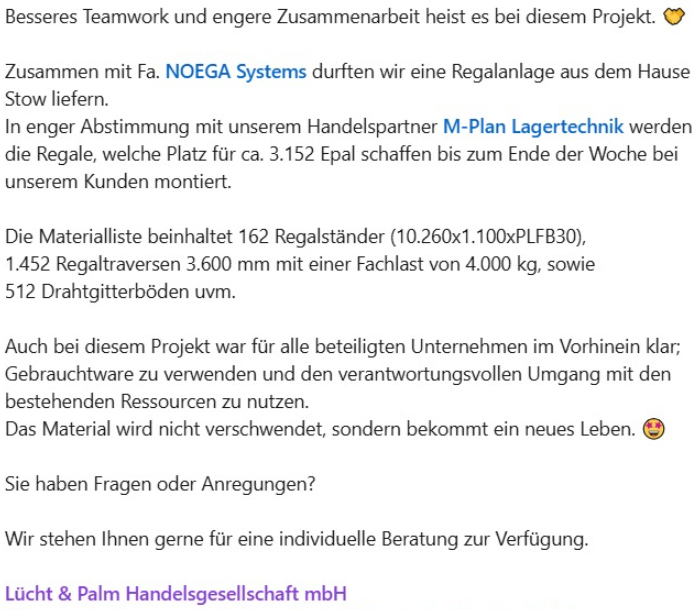 Mit der neuen Verschieberegalanlage bieten wir eine innovative, platzsparende und zukunftssichere Lösung für die Lagerlogistik. Das Projekt steht für Effizienzsteigerung, Wirtschaftlichkeit und nachhaltige Flächennutzung.